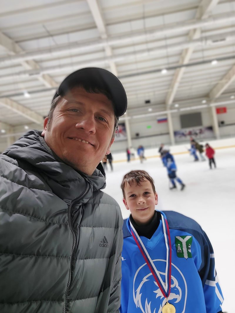 Сначала отец попробовал свои силы в командной игре на льду, затем к нему присоединился и сын. Парнишка занимается хоккеем в ФК «Сокол» города Киров. Пришлось даже перевестись из второй школы в первую, чтобы учиться только в первую смену, а вечерами ездить на тренировки. Дважды в неделю до соседнего города Прохора везёт отец, в остальные дни - верный друг и помощник дедушка. Плюс к этому - он играет в команде Дятьковского района, принимая участие в Первенстве и Чемпионате Брянской области.