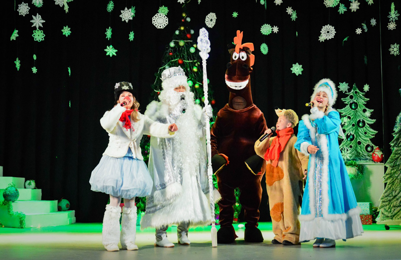Коллектив учреждения культуры, все его самодеятельные коллективы: эстрадно-вокальная студия «АРТ-Созвездие», детский театр «Шапито», танцевальный коллектив «Меланж» порадовал мальчишек и девчонок незабываемой премьерой. Сказочные персонажи увлекли зрителей в интересное путешествие по зимнему лесу, где на их пути встретились и лихие разбойницы, и добрые лесные жители, которые с удовольствием поиграли с ребятишками в подвижные игры. Были на этом пути разные повороты, но в итоге богатырский конь Юлий, наделенный как символ наступающего года волшебными полномочиями и волшебными подковами, помог Деду Морозу сотворить сказку и порадовать ребятишек яркими огнями на красавице-ёлке и исполнением новогодних желаний.