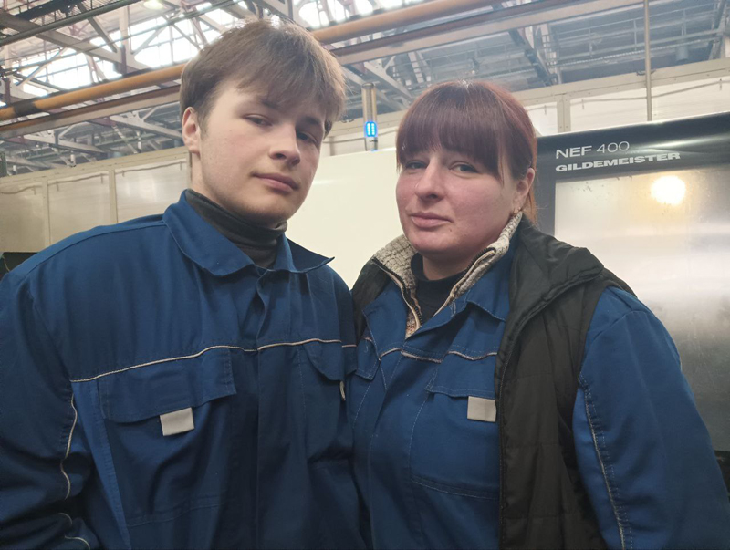 Наш разговор продолжился на рабочем месте мамы Игоря, которая трудится на агрегатном заводе оператором станков с ЧПУ. Екатерина Александровна Вовк трудится на предприятии 20 лет. Она также после окончания индустриального техникума пришла трудиться на завод. За годы работы предприятие стало для неё родным, поэтому она посоветовала сыну выбрать рабочую профессию.