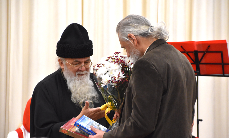 Отец Алексий подарил художнику книгу «Храмы земли Людиновской» и цветы.