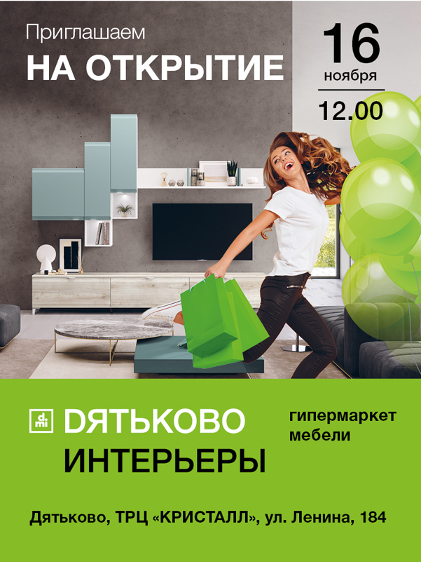 Торжественная церемония официального открытия гипермаркета в новом торгово-развлекательном центре «Кристалл» состоится 16 ноября в 12:00. Для маленьких и взрослых гостей, которые придут в салон в этот день, подготовлена развлекательная программа со сладким угощением и целым морем воздушных шаров. Но это еще не все: первые посетители получат шанс выиграть ценные призы и сертификаты на покупку мебели для обустройства своего дома!