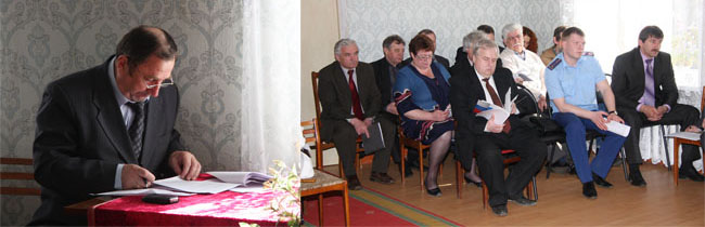 В перерыве между заседаниями все стали свидетелями необычного зрелища. Недалеко от здания администрации поселения в полной боевой готовности известный в районе механизатор Алексей Кондрашов представил пожарную цистерну. Тут же её продемонстрировали в действии. Но и здесь не обошлось без проблем, ведь обслуживание цистерны осуществляется на общественных началах. Глава администрации района Д.М. Аганичев пообещал оказать содействие в решении этого насущного вопроса.