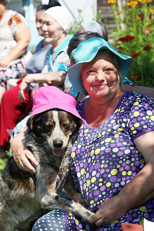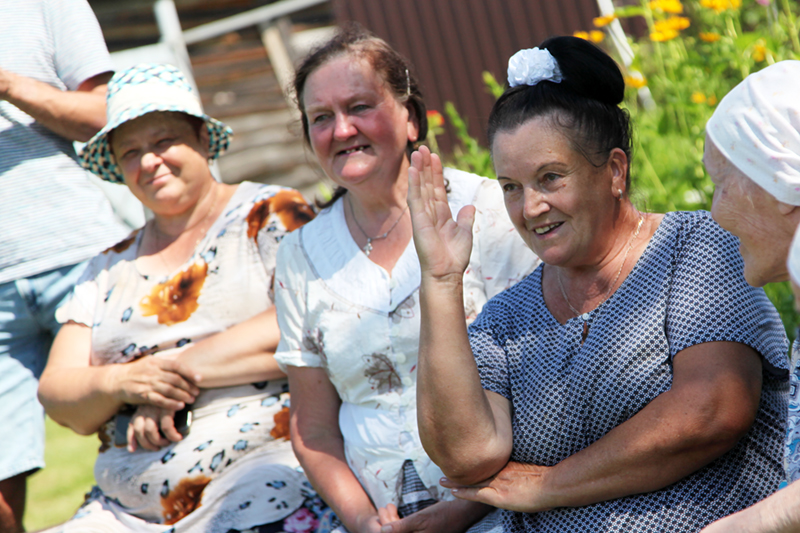 жители деревни Погост, собираясь на концерт передвижного центра культуры. Счастливые,