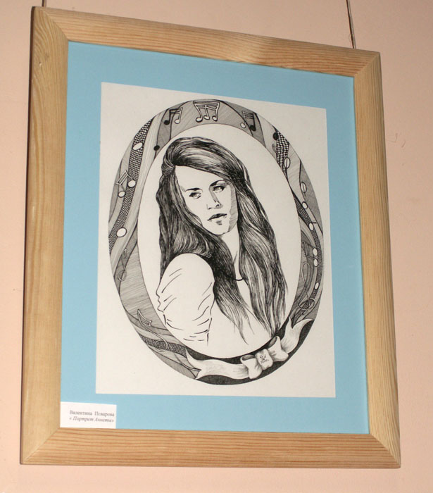 Валентина Поварова - молодая художница из города Карачева Брянской области. Работает в Карачевском доме творчества. В последнее время увлекается ещё и росписью стен. На выставке художница представила графику. Весомая часть её работ - это портреты женщин. Причём каждый из них несёт своё настроение, свои эмоции. В них явно отражаются туманная грусть, живительная радость и романтическое очарование. Работы другой тематики имеют философскую направленность. Размышление о жизни, противостояние любви и предательства. Тонкое переплетение чёрных и бело-серых тонов мягко ложится на восприятие. В работах прослеживается стиль автора, ощущается его настроение. Возле каждой из картин хочется остановиться и задуматься о своём…
