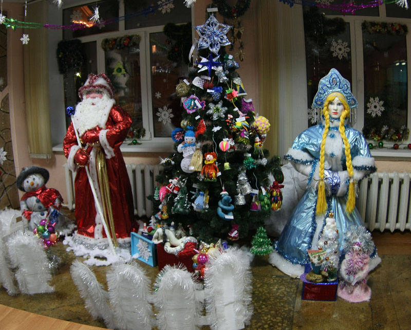 В настоящую зимнюю сказку превратился в новогодье Дом детского творчества! В сказочный мир попадаешь прямо с главного входа, украшенного сверкающими елями и диковинными деревцами. В снежинках и многочисленных сказочных героях, выполненных в разных техниках, фойе. Перила лестниц украшают волшебные сапожки-валенки.