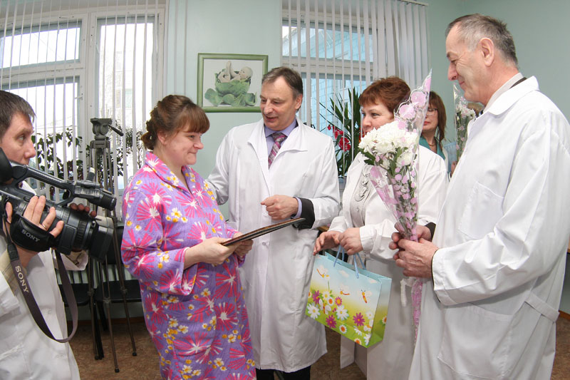 Вот и на этот раз глава муниципального района Л.В. Гончарова, депутат Законодательного собрания А.В. Петров, заместитель главы администрации района В.Ю. Яшкин, главный врач ЦРБ Н.О. Омарасхадов с цветами и подарками спешили в родильный дом, чтобы поздравить женщин с праздником 8 марта и самым дорогим подарком, который они сделали себе сами. Заметно было волнение рожениц, а их оказалось шесть. Именно 6 марта они родили трёх девочек и трёх мальчиков. Роды прошли благополучно, и теперь они немного усталые, но счастливые с удовольствием принимали поздравления и подарки.