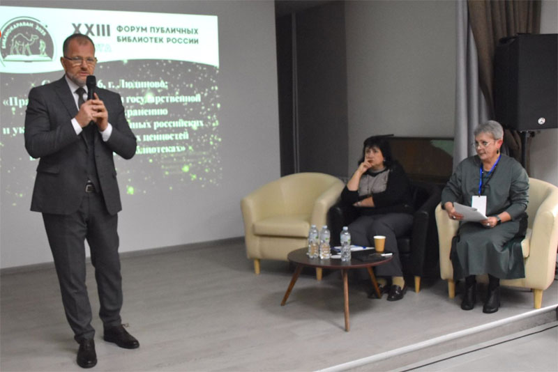 Работа выездной секции прошла в рамках XXIII форума публичных библиотек России «Библиокараван - 2025». Участников встречи поприветствовал врип главы администрации муниципального округа Геннадий Ананьев, отметивший важную роль библиотек в повышении читательского интереса и пожелавший всем продуктивной работы.