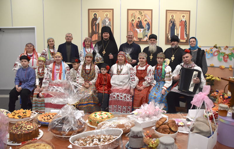 Весёлой и задорной песней с хлебом - солью встречали почётных гостей участники фольклорных коллективов «Проталинка» и «Черновцы» при Казанском соборе. Особенно порадовал их русский танец в исполнении четырёхлетнего малыша.