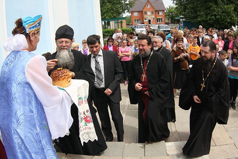 Торжественное открытие праздника, в том числе и тематической выставки, началось у здания ДК. Здесь присутствовали представители образования, культуры и социальной сферы, настоятели людиновских храмов. Хлебом-солью встречали дорогих гостей.