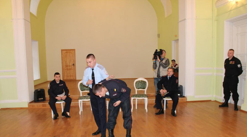 В рамках урока мужества представители Росгвардии продемонстрировали студентам КГУ приёмы самообороны, показали как правильно вести себя в тех случаях, когда злоумышленник осуществляет нападение с ножом.