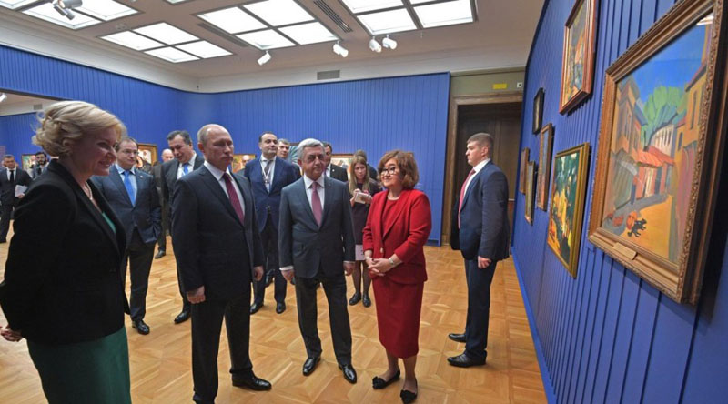 Владимир Путин и Президент Армении Серж Саргсян посетили Третьяковскую галерею, где выставлены работы художника Мартироса Сарьяна.