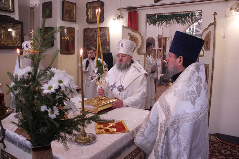 Вместе с Преосвященнейшим владыкой на открытии вертепа присутствовали протоиерей Алексий Жиганов и священнослужители города, а также прихожане и все желающие.