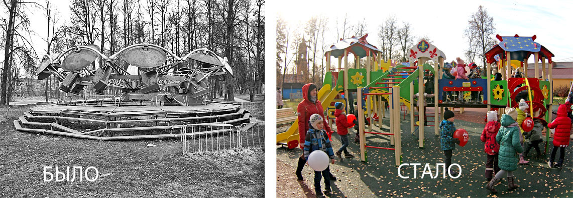 На месте пришедшей в негодность и демонтированной карусели в центральном парке теперь радует малышей обустроенный "Детский дворик"