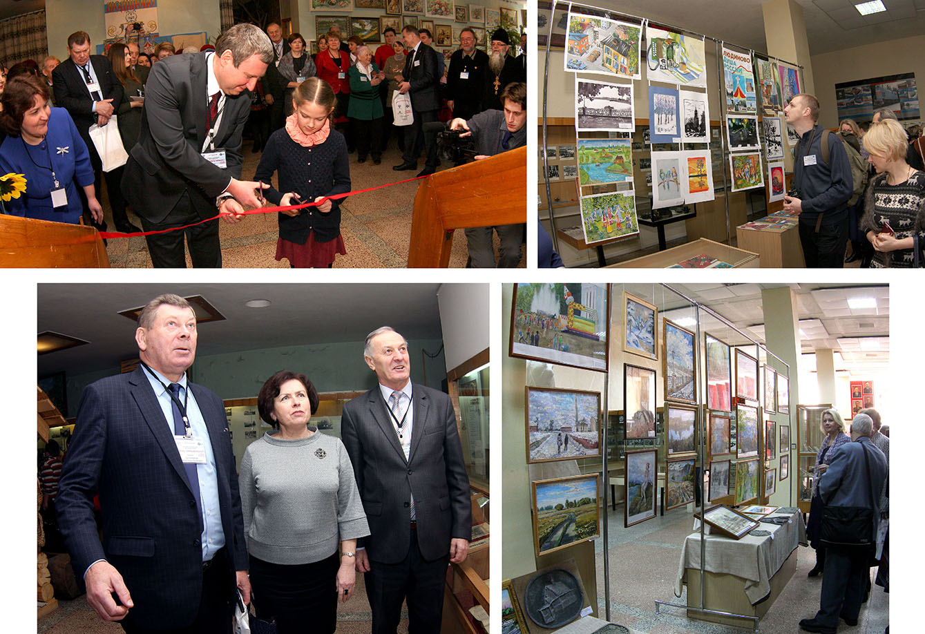 Учащиеся художественной школы подготовили к этому событию замечательную выставку детских и юношеских работ "Тебе, любимый город, посвящается…". Глава администрации муниципального района Даниил Аганичев и юная художница Полина Яшина (на снимке), перерезав символическую красную ленточку, пригласили участников форума ознакомиться с творчеством юных дарований.