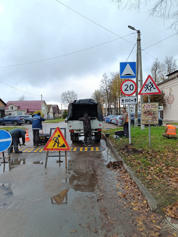- В течение года заменили 57 дорожных знаков, перевыполнив муниципальное задание. Нанесли более 3 км дорожной разметки. Заменили 33 искусственные неровности и установили 9 новых «лежачих полицейских». Обслуживаем светофорные устройства.