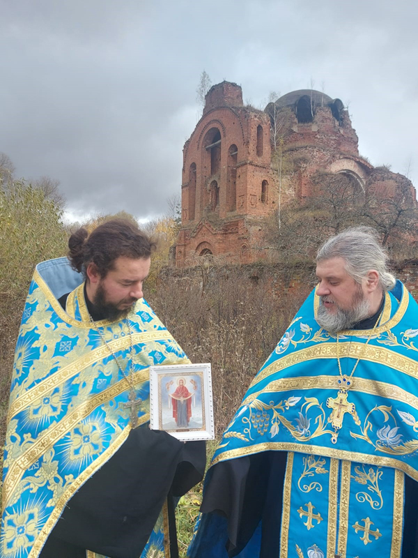 - Несмотря на то, что в настоящее время здесь нет освященного алтаря, нет всего того, что мы привыкли видеть в церкви, внутри Космачевского Покровского храма чувствуется Благодать и намоленность. Эти стены несут в себе историческую память о величественных, многолюдных православных службах, христианских таинствах, совершаемых нашими предками, - рассказывает настоятель Людиновского Свято-Лазаревского храма, протоиерей Михаил Карпенко. - Не случайно говорят, что в стенах разрушенных церквей и соборов молятся ангелы и души тех, кто посещал храм в прошлом. Поэтому служить там в уединении, вдали от цивилизации всегда легко, умиротворенно, благодатно.