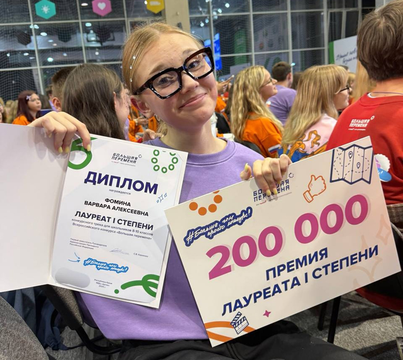 Другая победительница конкурса Варя Фомина участвовала в «Большой перемене» во второй раз. В прошлый раз она тоже стала победителем в возрастной категории 5-7 классов, и в качестве приза совершила яркое путешествие от Москвы до Владивостока. Варя окончила художественную школу и участвовала в огромном количестве проектов. Является автором социального и грантового проектов, создает квесты. Создала историко-краеведческий марафон по нашей области, который будет запущен между клубами «Большой перемены» наших школ. Ребята будут коммуницировать между собой, знакомиться. Является автором игры по заповедники России, благодаря которой полетела в лагерь «Океан» на Дальний Восток. Трижды она награждалась поездками в «Артек» в качестве бонуса за реализацию актуальных проектов. Старшеклассница старается и реализовать свои способности, и воспользоваться предоставляемыми возможностями путешествовать, смотреть мир, общаться с такими же активными и увлеченными молодыми людьми.