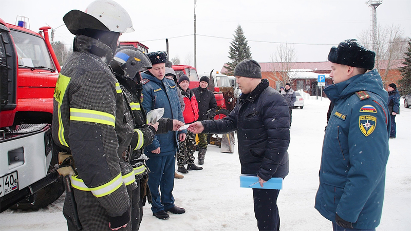 На смотр прибыли техника и личный состав пожарно-спасательной части №4 г. Людиново, агентства «Мой город», Людиновского филиала АО «Газпром газораспределение Калуга», тепловых сетей, МУЖКП «Болва», Электросетей и межрайонной больницы, добровольные пожарные дружины сельских поселений, которые участвуют в тушении лесных пожаров, эвакуации населения и других мероприятиях.
